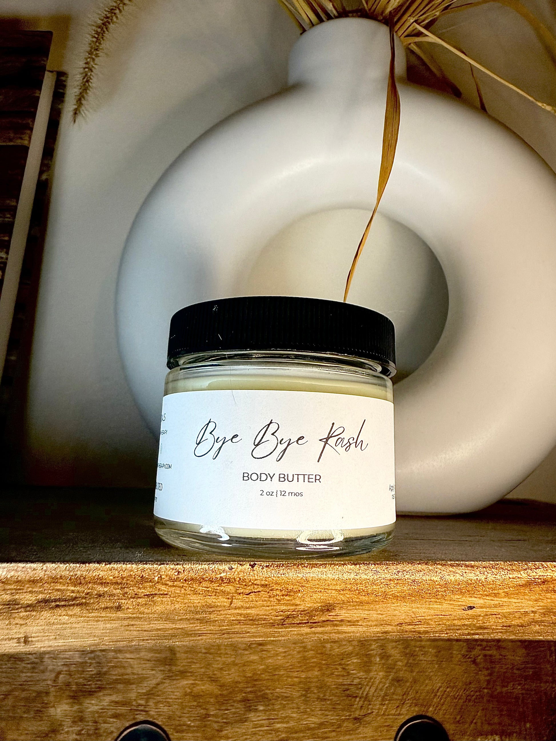 Bye Bye Rash combines beeswax, shea butter, coconut oil, jojoba oil, and argan oil to form a breathable, moisturizing barrier that helps prevent and soothe diaper rash. We’ve included a skin-safe 0.5% dilution of Roman chamomile essential oil, well-known for its gentle, anti-inflammatory properties—ideal for sensitive baby skin.