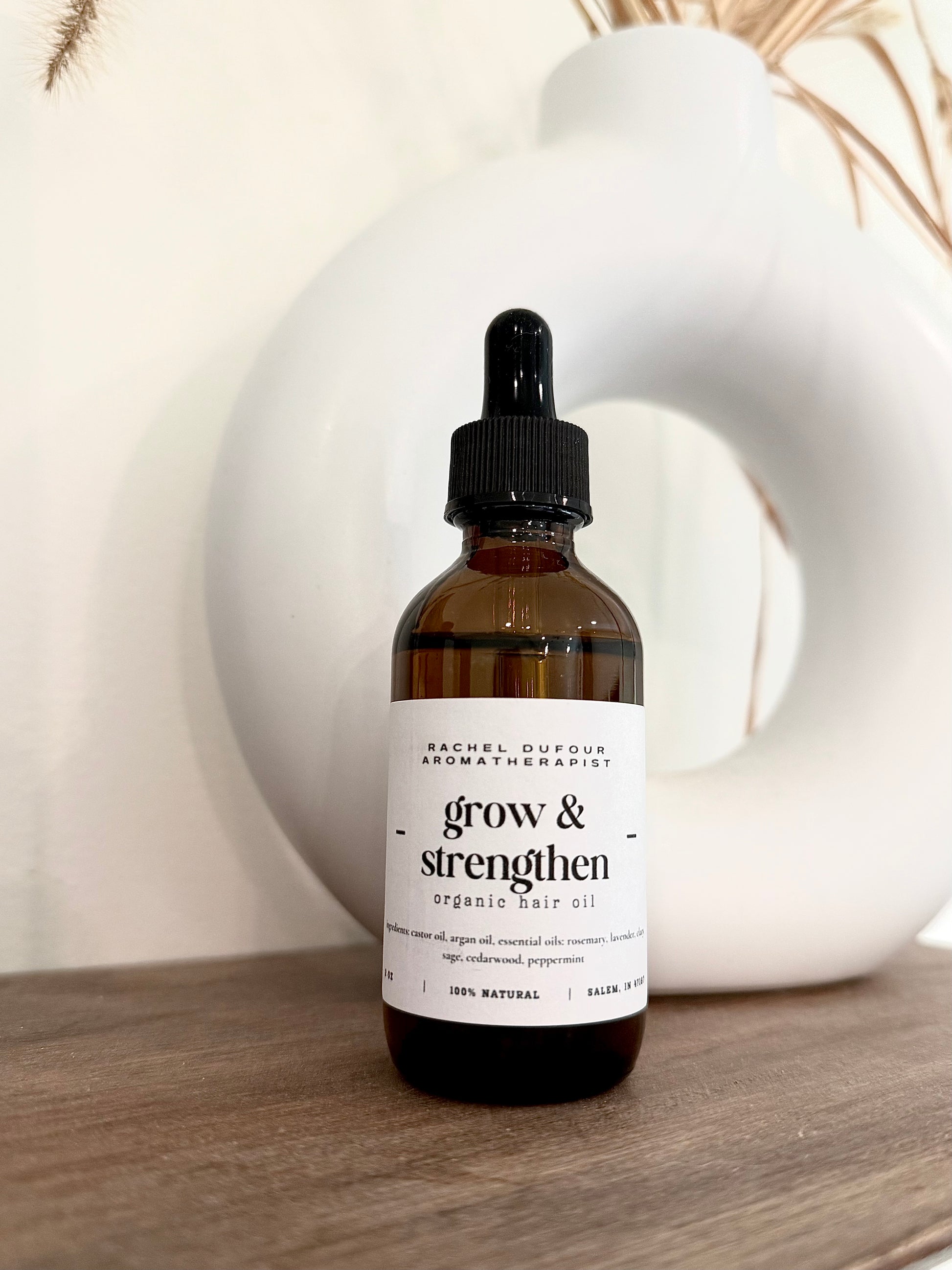 Support healthy, vibrant hair naturally with our Grow & Strengthen Hair Oil, a powerful botanical blend crafted to promote growth, strength, and shine.